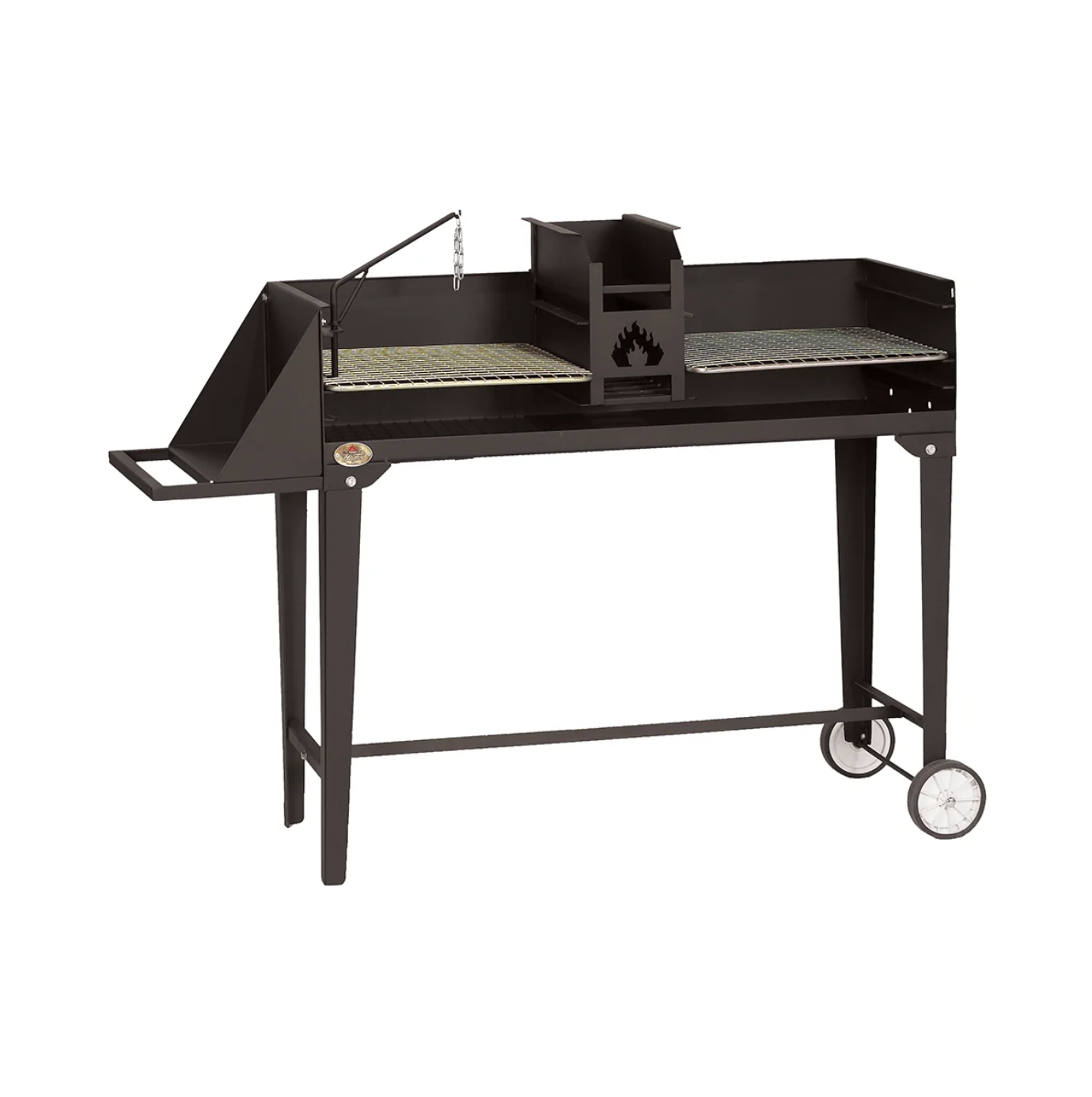 This versatile braai comes fully equipped with everything you need for the ultimate outdoor cooking experience: an integrated ash pan for easy cleaning, two half grids for flexible cooking zones, grid lifters for convenient handling, a potjie holder for traditional slow-cooked meals, an ember maker for effortless fire management, a built-in work surface, and two sturdy wheels with legs for easy mobility and stability.